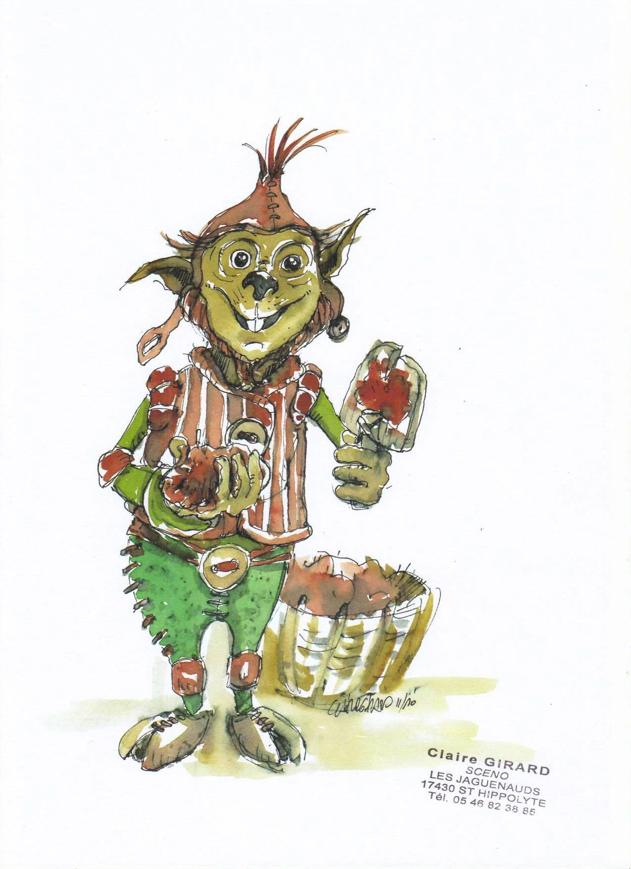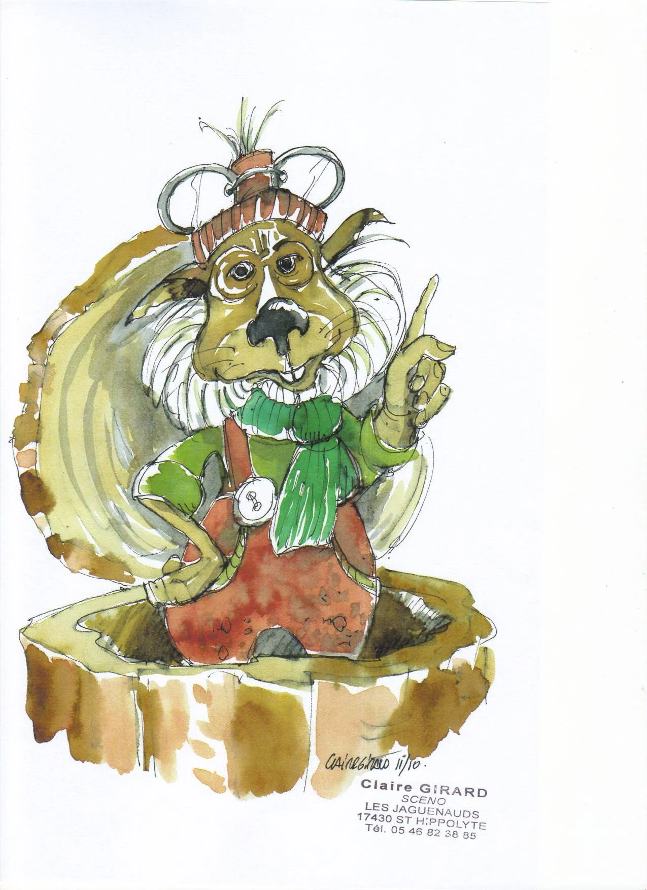 Modelage terre, moulage plâtre puis tirage en stratifié polyester. Déco peinture acrylique et vernis polyuréthane mat