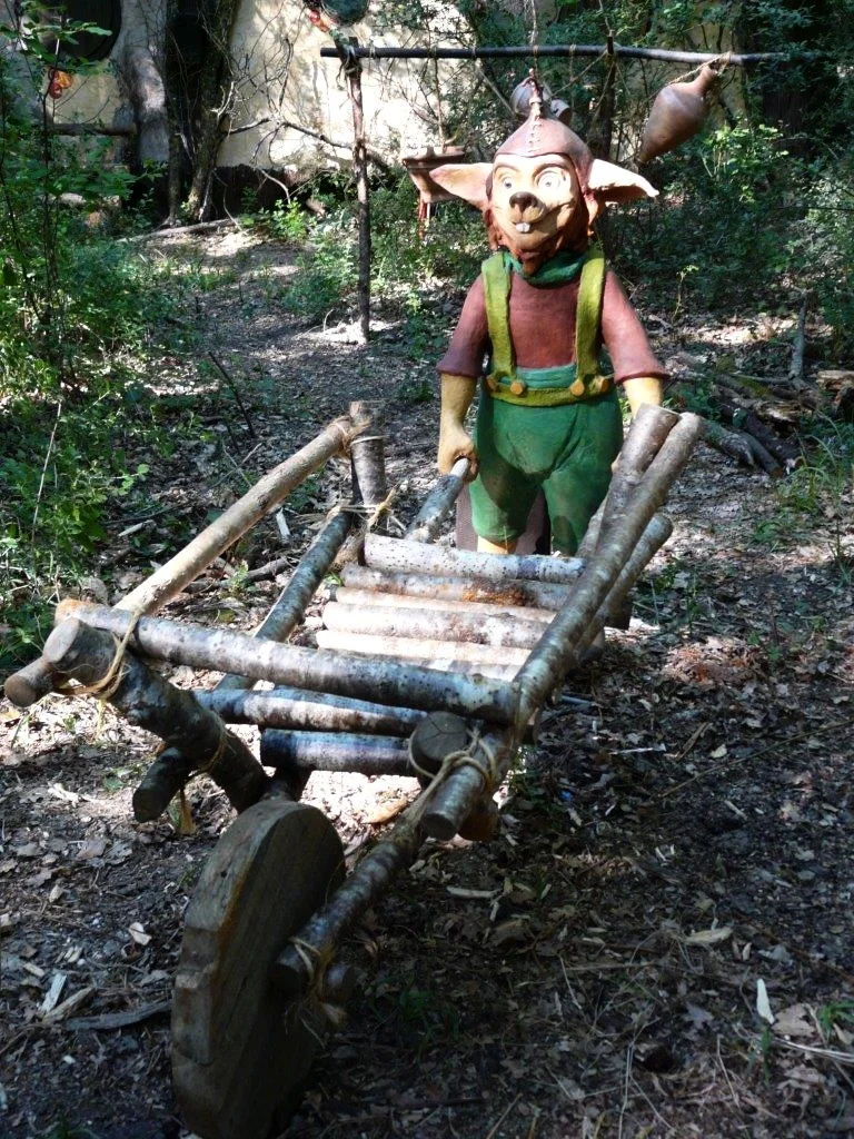 Animation de certains lutins par motorisation électrique intégré dans les sculptures.