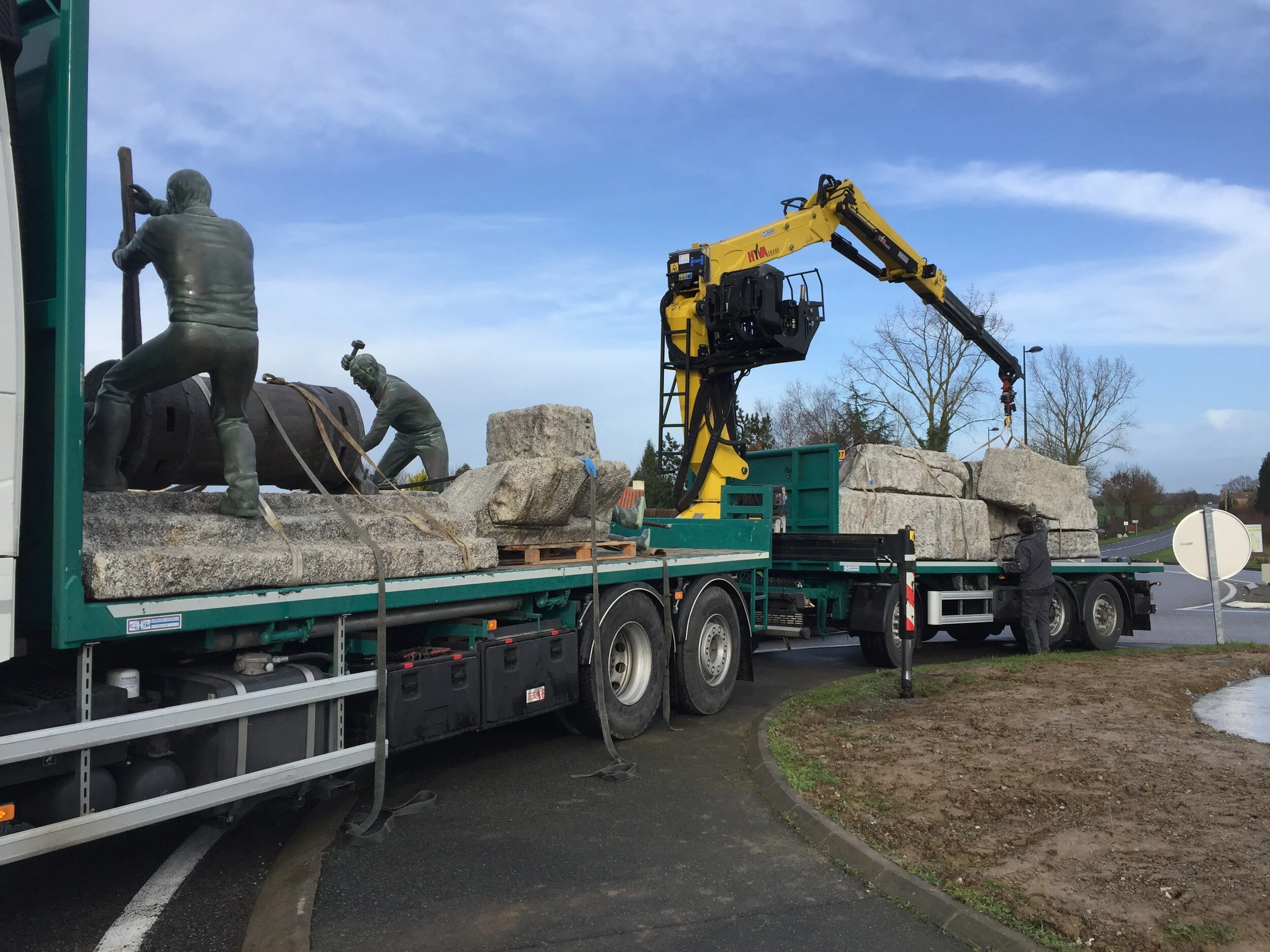 Réalisation d’une scène sculptée illustrant l’extraction du granit dans les carrières des Lucs sur Boulogne au début du 20éme siècle. Réalisation en mousse polyuréthane stratifiée polyester. Finition gelcoat teinté dans la masse aspect granit obtenu par projection d’un mélange sable/gelcoat.